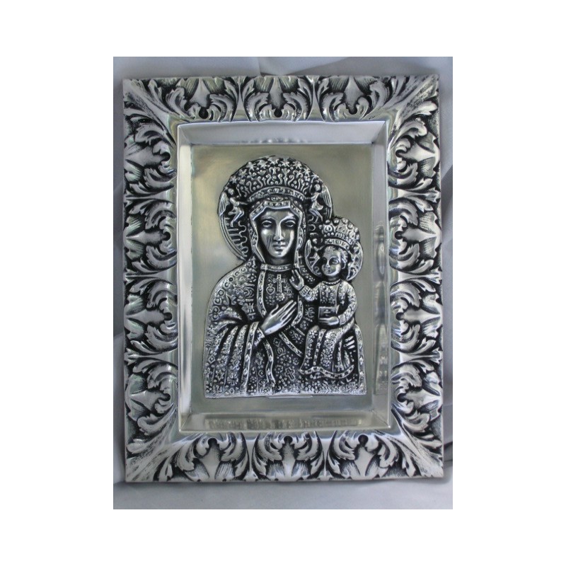Jeden z najbardziej znanych wizerunków Matki Boskiej został uwieczniony na ręcznie wykonanej i platerowanej srebrem obrazku. Jasnogórski Cudowny Obraz Najświętszej Maryi Panny Niepokalanie Poczętej w tej oryginalnej wersji będzie doskonałą pamiątką dla Twoich bliskich. Szczególnie, gdy podarujesz go jako prezent z okazji Chrztu, Komunii, ślubu lub na pamiątkę z Ojczyzny - Polski. Przyniesie on szczęście najdroższym Ci osobom i sprawi, że ikona pokaże do kogo w trudnych chwilach należy się zwrócić.