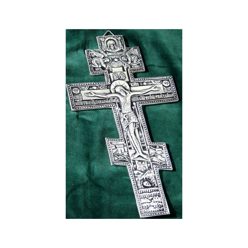 Oryginalny prawosławny krzyż platerowany srebrem.Wymiary 14 cm x 24,5 cm.