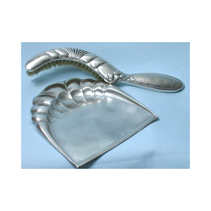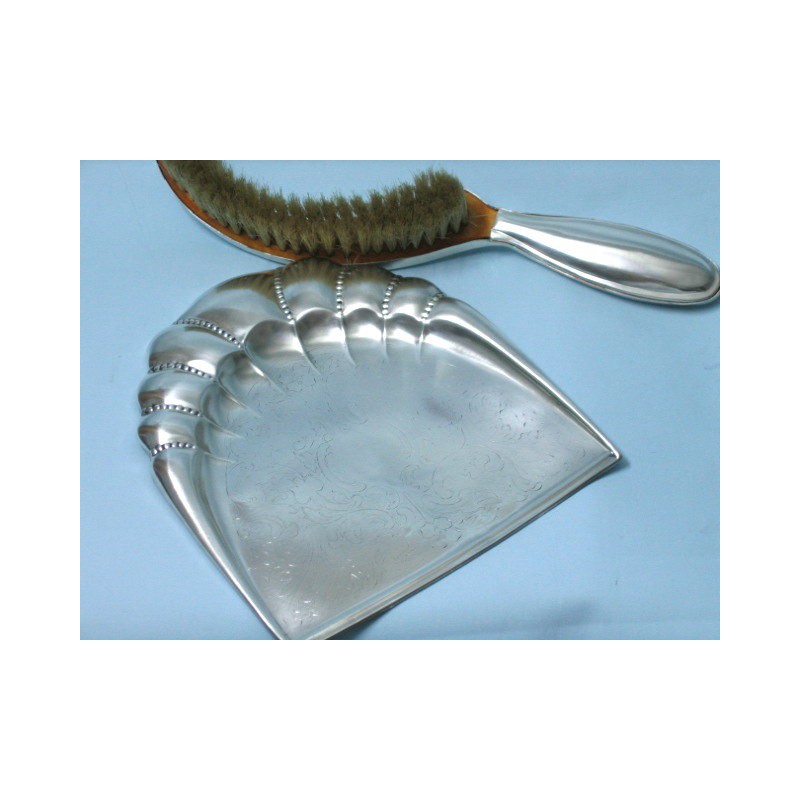Ręcznie wykonany, platerowany srebrem komplet do sprzątania okruchów ze stołu. Komplet stanowi platerowane srebrem szufelka oraz szczotka z naturalnego włosia o bardzo delikatnej stylistyce . Piękny, ozdobny i jednocześnie funkcjonalny przedmiot ( sygnatura A. Stępkowski).