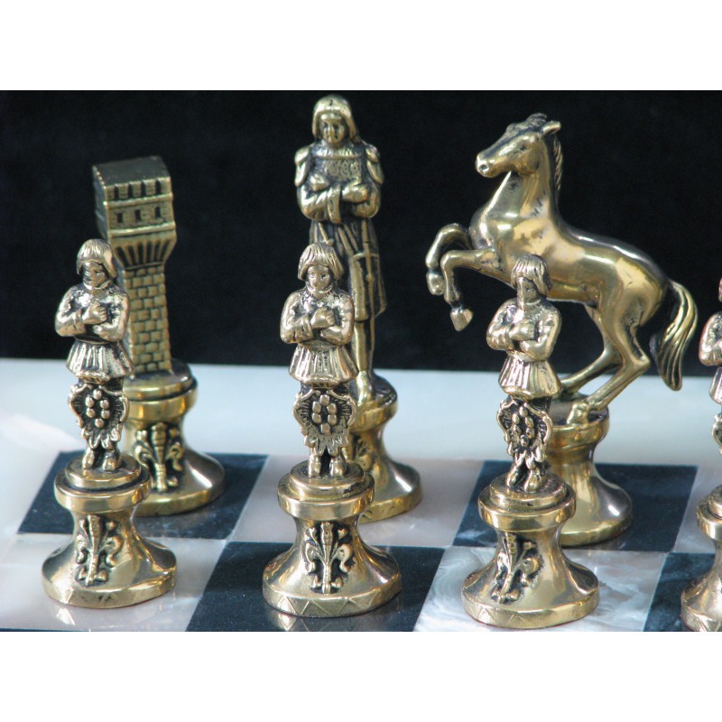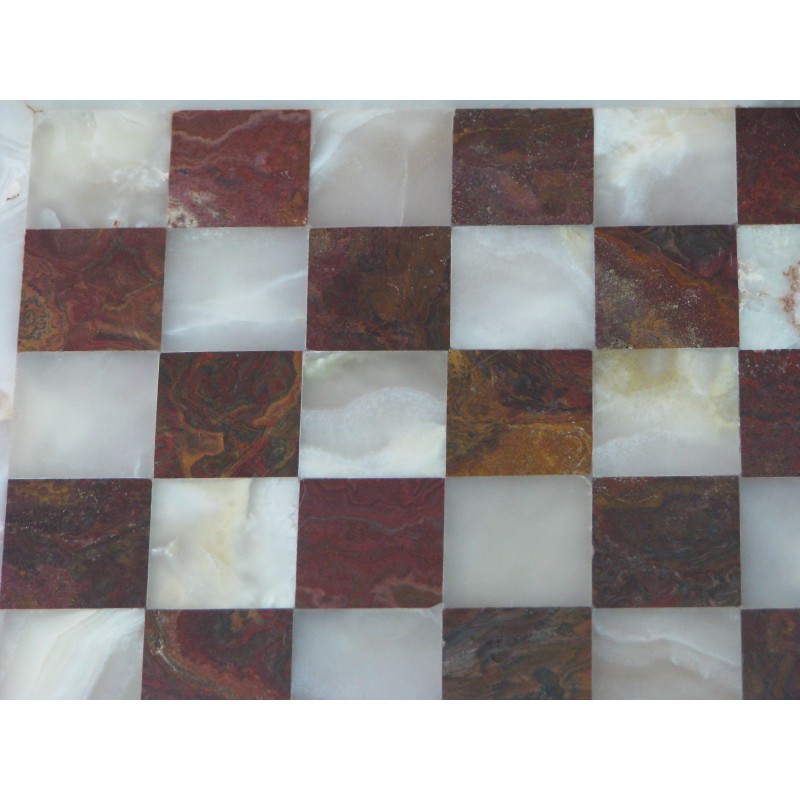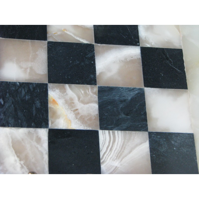 Całość pakowana w aksamitne pudełko. Cena dotyczy 1 kompletu. Kolorystyka szachownic może odbiegać nieco od zdjęć ze względu na różnorodność użytego kamienia.