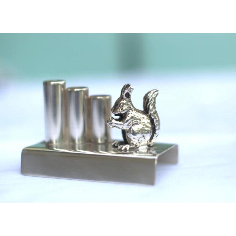 Oryginalny, posrebrzany stojak do długopisów z bardzo wdzięcznym motywem w postaci figurki wiewiórki. Idealny pomysł na upominek dla dziecka i dorosłego .