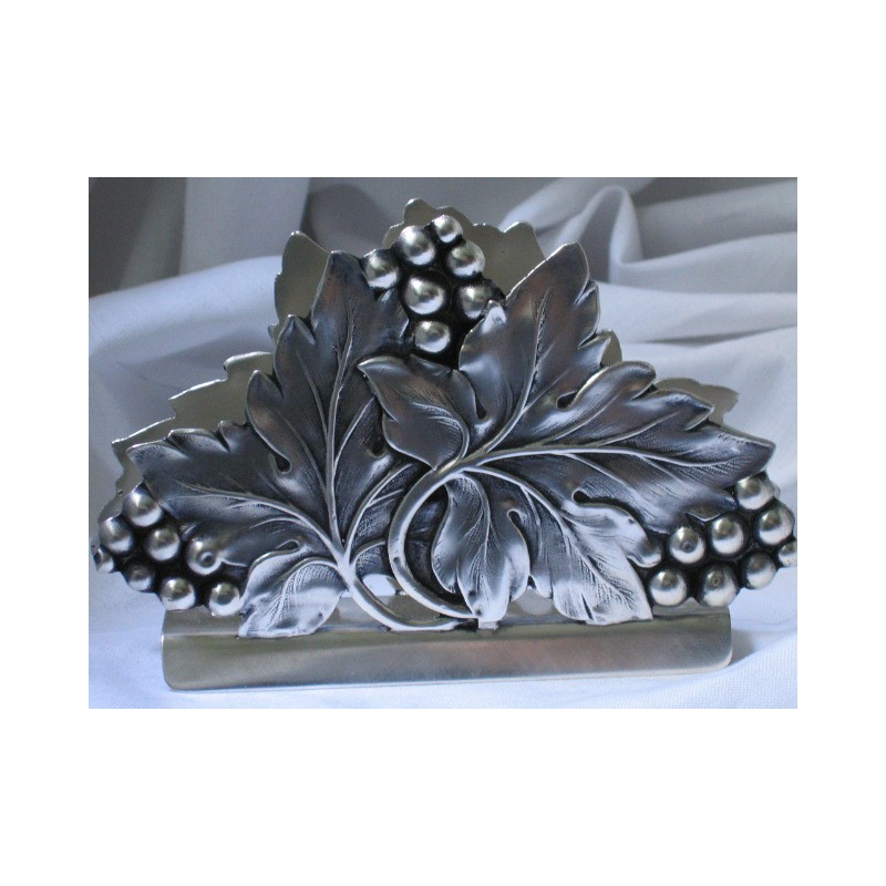 Śliczny, platerowany srebrem, wykonany ręcznie serwetnik zdobiony motywem winogronowym- stylowa ozdoba eleganckiego domu.Wyrób posiada firmową sygnaturę A. Stępkowski.