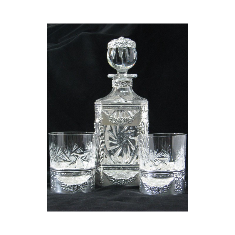 Dla dojrzałych mężczyzn, którzy wiedzą czego oczekują od życia, najlepszym prezentem okazać się może ten wspaniały zestaw składający się z przepięknej karafki (0,75 l) oraz dwóch szklaneczek ozdobionych ręcznie platerowanymi srebrem elementami. Stylowy zestaw, który będzie wspaniale podkreślał kolor trunku, jaki się w nim znajdzie... Idealny pomysł na prezent biznesowy.
