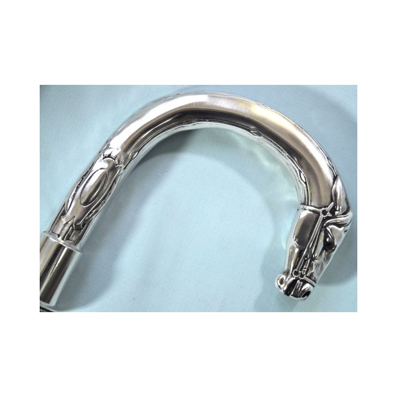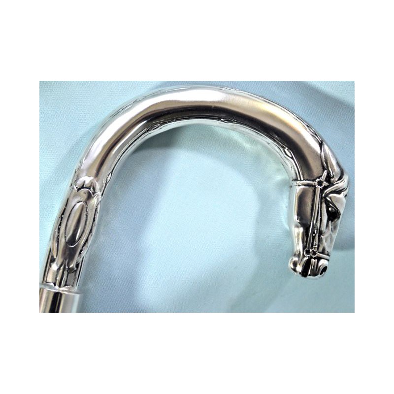 Ręcznie wykonana stylowa laska -pięknie zdobiona rękojeść przedstawiająca głowę konia z grzywą - platerowana srebrem(polskie rzemiosło!)końcówkę stanowi antypoślizgowa nasadka, drzewiec w kolorze brązowym ( laski dostosowujemy do wzrostu Osoby mającej ją używać standardowo ok. 88 cm). Doskonały pomysł na prezent dla eleganckiej Osoby- laska ma charakter stylowego dodatku do garderoby.Na jednym ze zdjęć- przykładowy widok gotowych lasek wraz z drzewcem