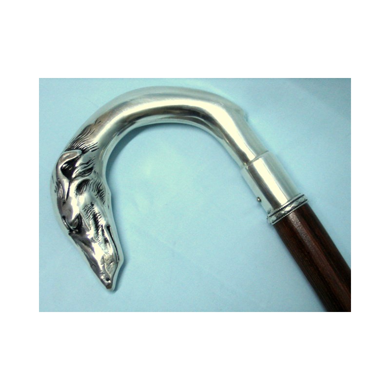 Ręcznie wykonana stylowa laska -pięknie zdobiona rękojeść przedstawiająca głowę charta - platerowana srebrem(polskie rzemiosło!)końcówkę stanowi antypoślizgowa nasadka, drzewiec w kolorze brązowym ( laski dostosowujemy do wzrostu Osoby mającej ją używać standardowo ok. 88 cm). Doskonały pomysł na prezent dla eleganckiej Osoby- laska ma charakter stylowego dodatku do garderoby.Na jednym ze zdjęć- przykładowy widok gotowych lasek wraz z drzewcem