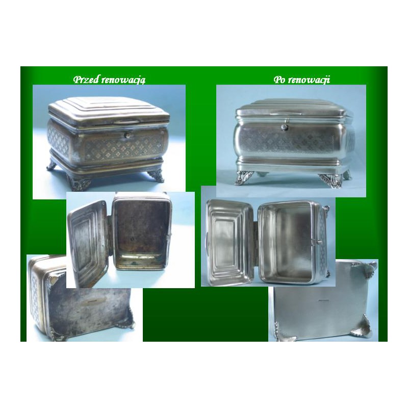 A.Stępkowski plater - to ponad 50 LAT tradycji w profesjonalnej renowacji współczesnych jak i przede wszystkim starych, wymagających „przywrócenia do życia „ wyrobów polegającą na srebrzeniu, dorabianiu brakujących elementów ( tj. nóżki , rączki, wieczka) , oksydowaniu itp. Srebrzeniewykonujemy w dwóch wersjach: bardziej współczesnej - srebro błyszczące oraz matowe srebro antyczne.