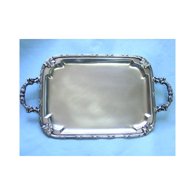 Ręcznie wykonana ( polskie rękodzieło) tacka platerowana srebrem. Lustro gładkie - wyrób posiada firmową sygnaturę A. Stępkowski . Wymiary tacki : 30 cm x 17 cm ( bez rączek 23 cm x 17 cm)