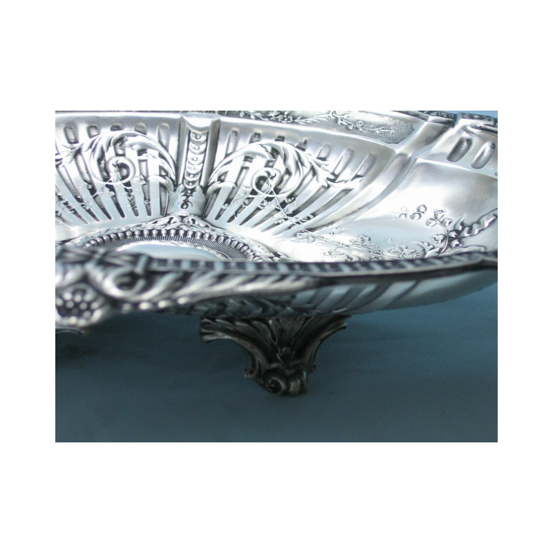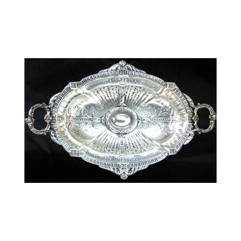 Stylowa patera na nóżkach- wykonana ręcznie ,zdobiona motywami roślinnymi Patera może pełnić funkcję ozdobną, jak i funkcjonalną - doskonała do owoców, słodyczy itp. Wyrób posiada firmową sygnaturę A. Stępkowski, wymiary paterki : 44cm x 28 cm.