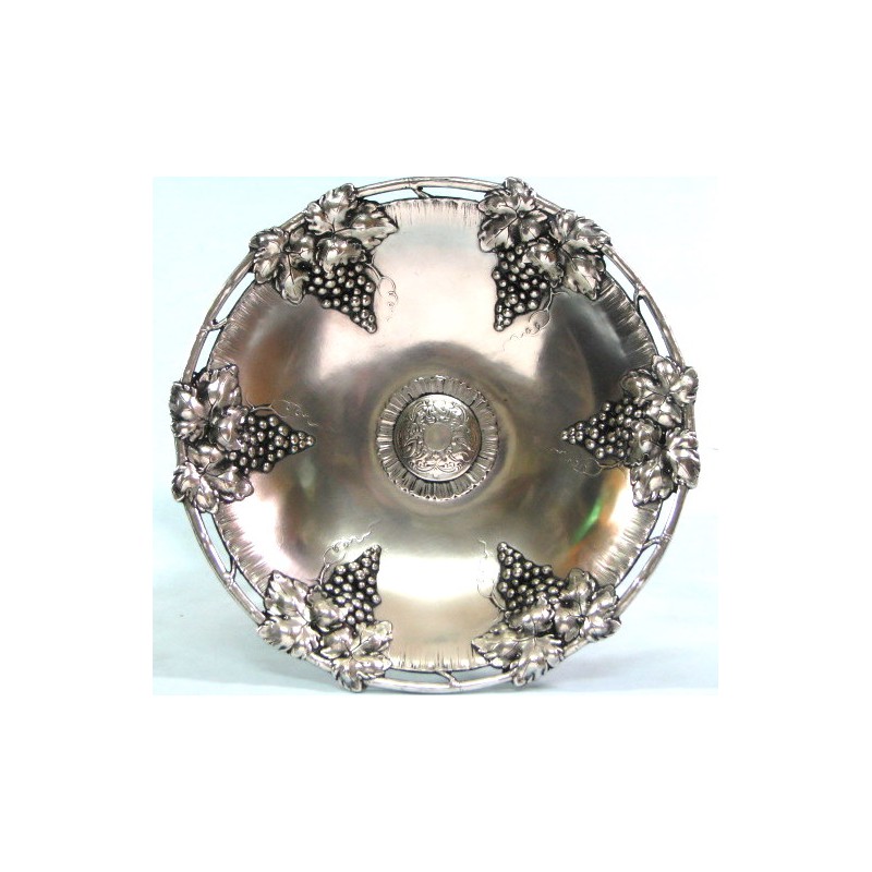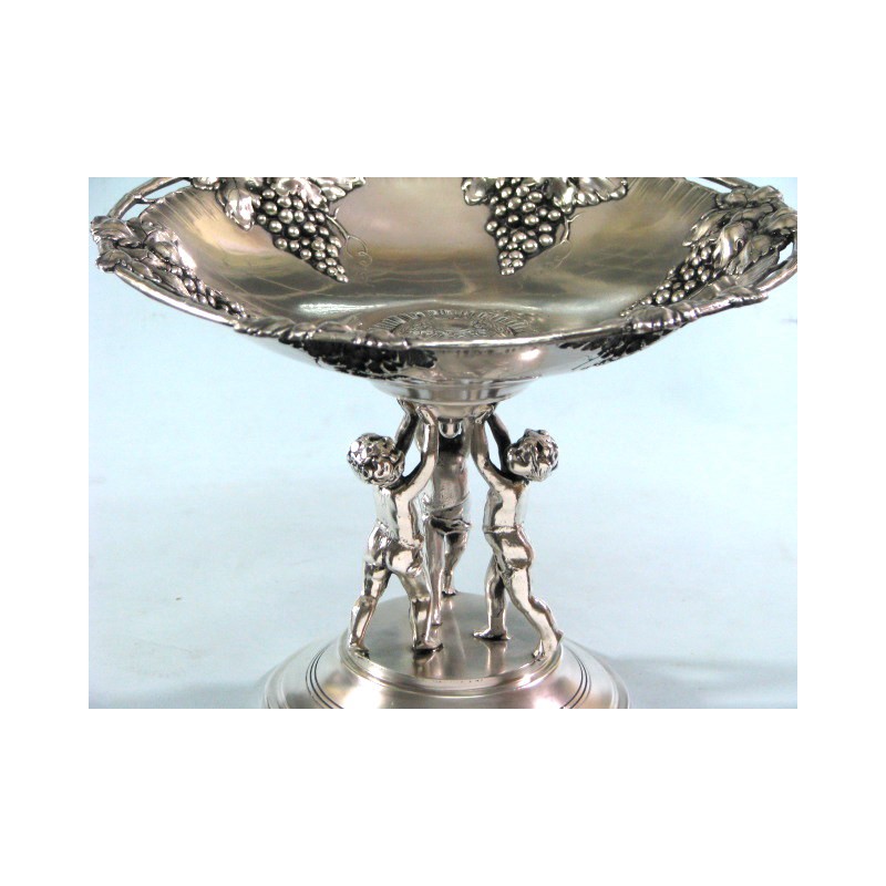 Wyjątkowo piękna, oryginalna, platerowana srebrem patera z trzema amorami - całość wykonana ręcznie (w odróżnieniu do nieudolnej kopii naszego wyrobu, nasze amorki mają wyraźne, a nie bezkształtne twarze). Patera może pełnić funkcję ozdobną, jak i funkcjonalną - doskonała do owoców, słodyczy itp. Wyrób posiada firmową sygnaturę, wymiary paterki: średnica ok. 25, 18 cm wysokości. Może być również wykonana z innym talerzem - szklanym lub metalowym.