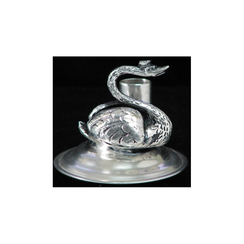 Niezwylke ozdobny i oryginalny przedmiot - pojemnik na wykałaczki platerowany srebrem z figurką łabędzia. Przedmiot posiada firmową syganturę . W ofercie posiadamy kilkanascie wzorów podstawek- INNE W ZAKŁADCE WYKAŁACZNIKI.